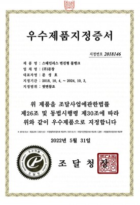 优秀产品指定证书(范围调整)STS基础隔离水箱(A)