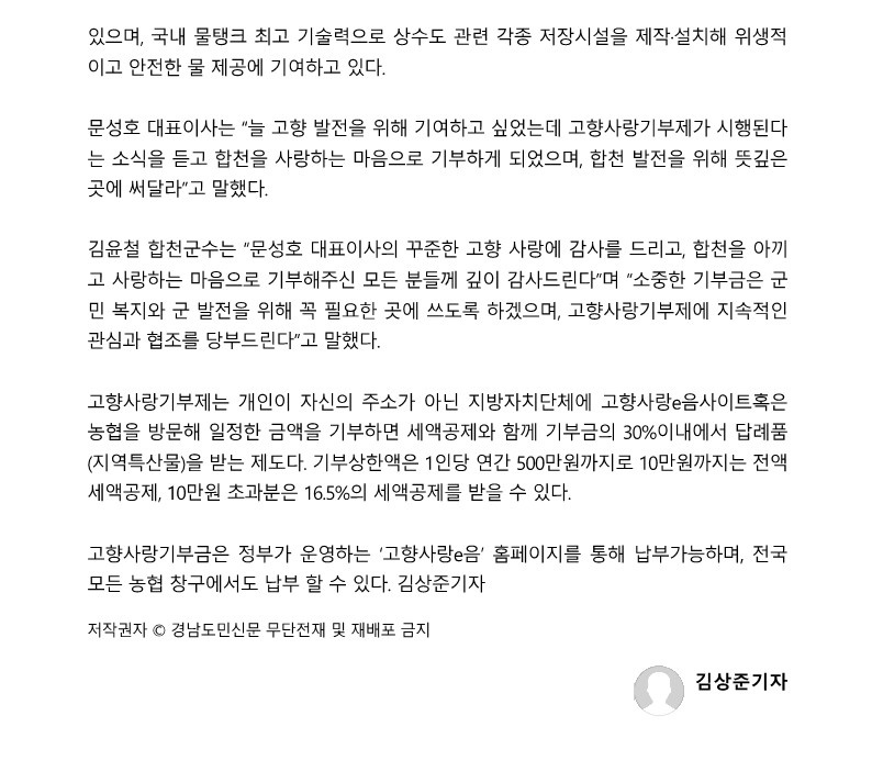 Moonchang CO., Ltd. CEO Moon Sung-ho Participated in Hapcheon-gun Home… 본문 Gyeongnam Domin Ilbo 23.01.29 List